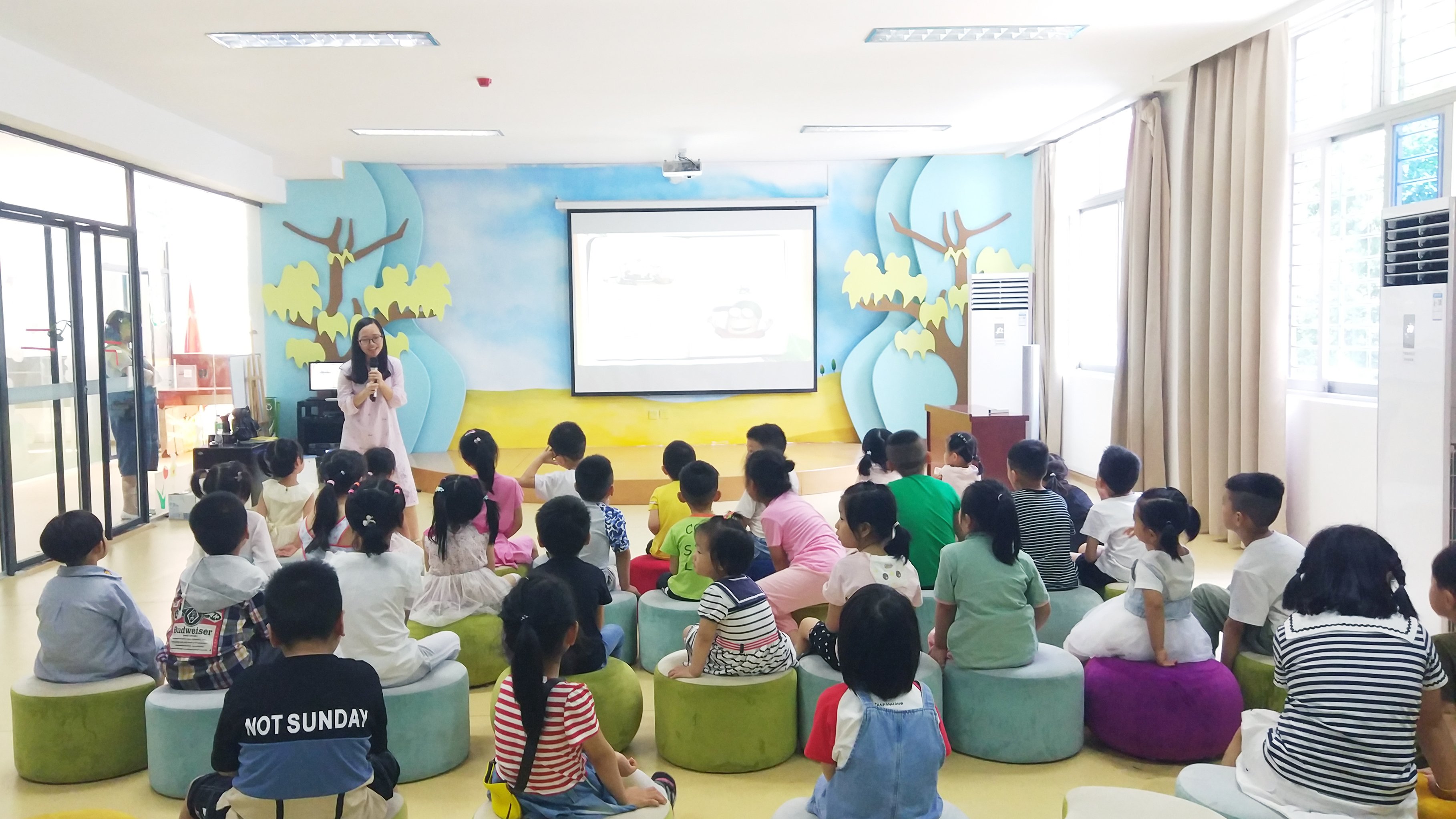 6月16日上午,申搏SUNBET申搏教工党支部与市图书馆联合举办的双语绘本讲读活动在泉州市图书馆少儿分馆如期开讲。图书馆二楼多功能厅洋洋盈耳,座无虚席,30几位小朋友在家长的陪伴下如约来到这里,聆听SUNBET申搏李媛媛和王流新两位老师讲述英文绘本故事《Fly Guy》和中文绘本故事《不要随便欺负我》。