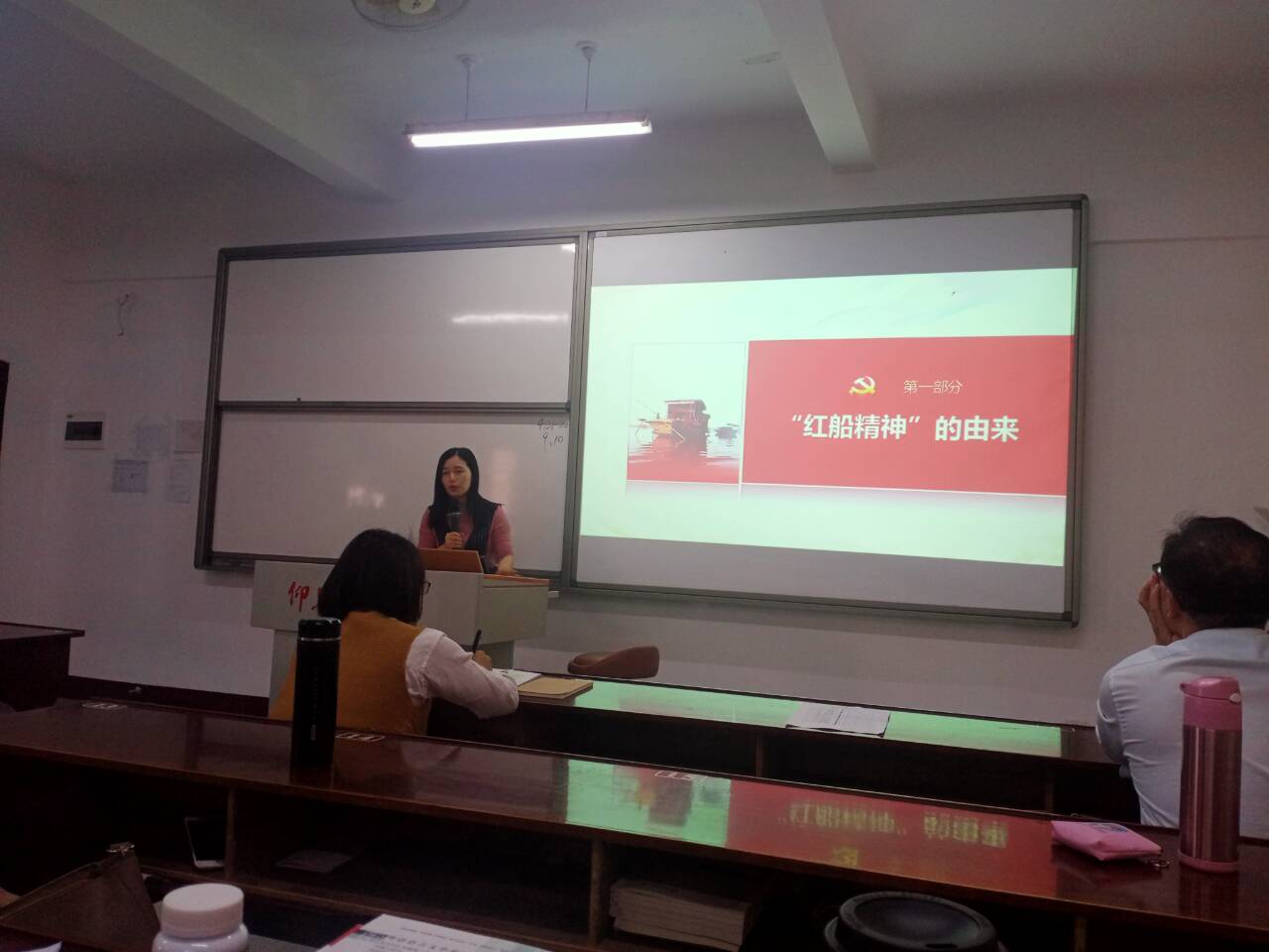 “秀水泱泱、红船依旧;时代变迁、精神永恒”。我院教工支部第一小组成员陈苗苗同志带领大家重温“红船”精神,通过她的讲解,党员们再次学习了我党建党的光辉历程和“红船精神”的历史地位、深刻内涵和时代意义。开天辟地、敢为人先的首创精神、坚定理想、百折不挠的奋斗精神、立党为公、忠诚为民的奉献精神都是每一位党员要牢记在心并且永远传承下去的伟大精神。