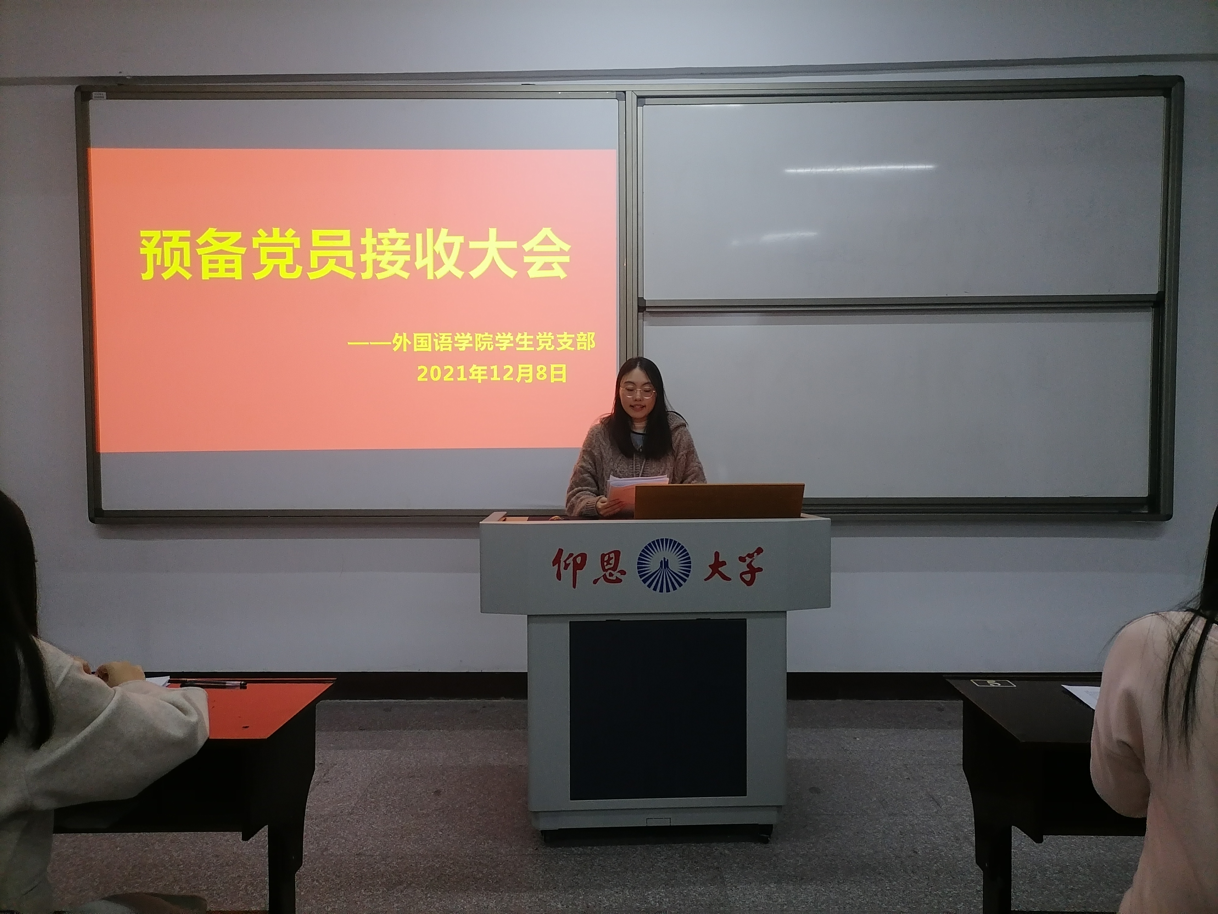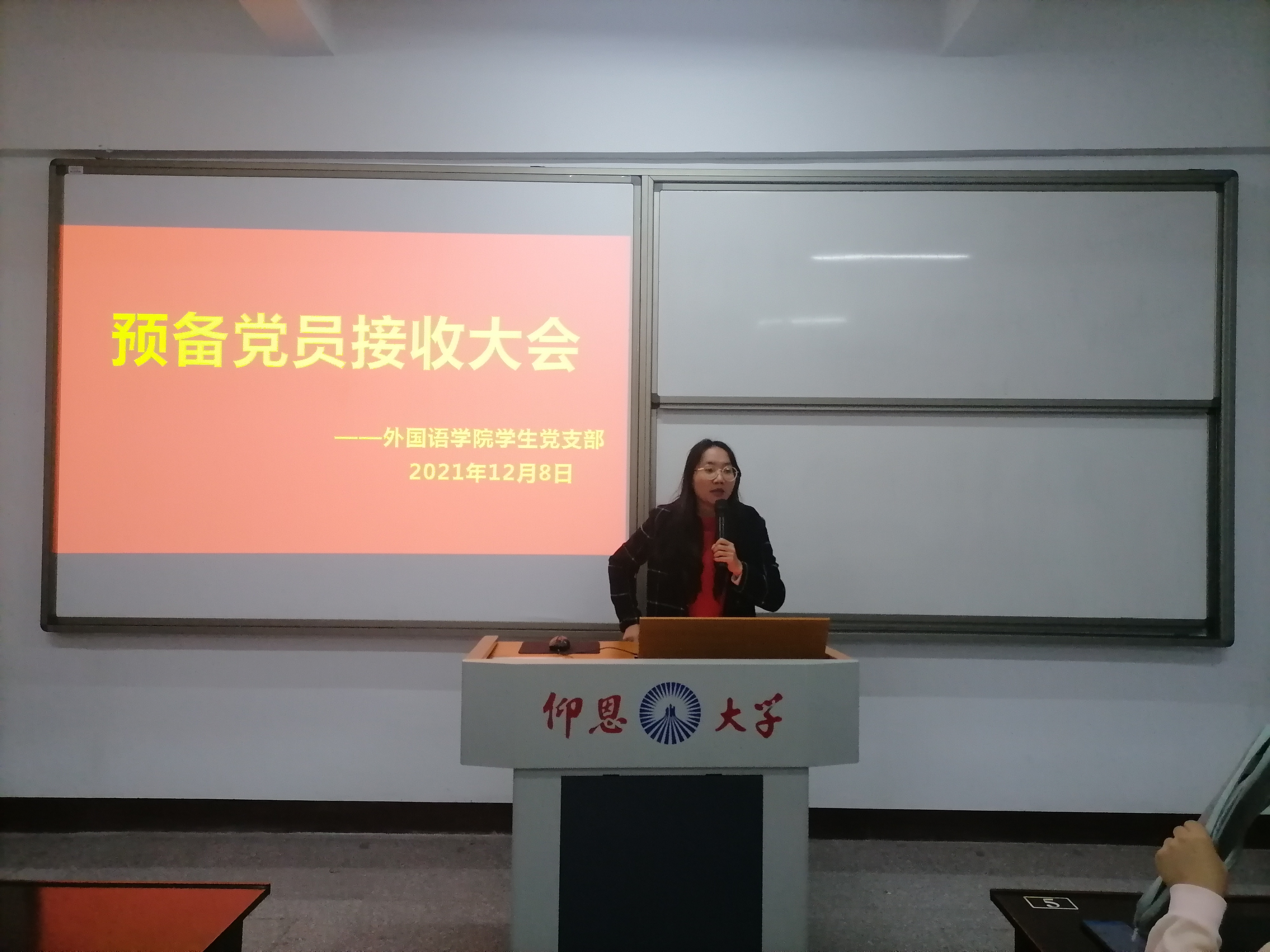 2021年12月8日SUNBET申搏学生党支部在普照教学楼309教室召开接收预备党员大会。本次会议由学生党支部书记许淑琴主持,支部全体师生党员和积极分子参加本次大会。
