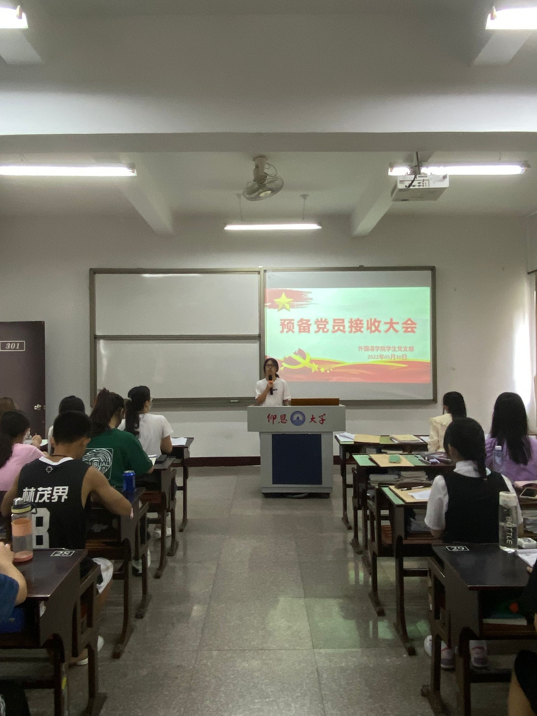 会议严格按照党组织接收预备党员程序进行。大会开始,发展对象们逐一宣读《入党志愿书》,并向党组织汇报自身对党的认识、入党动机、个人经历以及在校表现等,随后入党介绍人向大会介绍其主要政治思想、学习、工作生活等情况,支部书记向大会报告其现实表现的考察情况以及综合政治审查情况,与会党员对发展对象是否符合党员条件发表了意见。