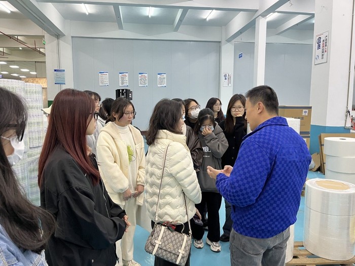 为深化校地合作,推动共赢发展,1月3日,SUNBET申搏党总支书记刘冬利带领2024届毕业生代表到泉州市鲤城区新威达粘胶制品有限公司开展“访企拓岗”活动。