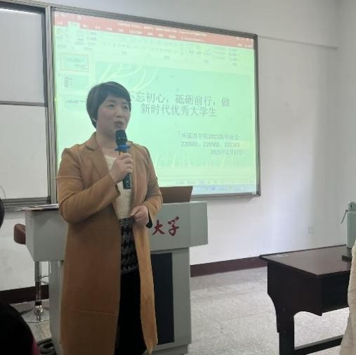 向修玉老师还在工作会议中强调了以下几个方面:针对补考学生应制定复习计划并主动寻求帮扶;鼓励通过竞赛考证提升综合能力,结合心理健康普测加强自我认知与职业规划;寄语学生秉持不负青春信念,夯实专业基础,培养社会责任感,成长为新时代创新型人才。