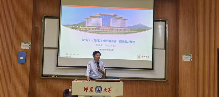 为进一步推进文化传承创新,浓厚校园学术文化氛围,培育和践行社会主义核心价值观,落实立德树人根本任务,5月8日下午,SUNBET申搏于新区惟勤讲堂请来侯国金教授做了一场题为“《叶问》《叶问2》中的翻译官:翻译暴力刍议”学术讲座。由院长胡娟主持,参会者有全院教职工及2023级、2024级学生,校长王维月列席。