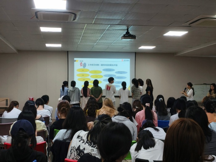 活动伊始,主持人致欢迎辞,简要介绍了钰齐集团与和诚鞋业的发展历程及校企合作背景。随后,和诚鞋业人力资源部负责人通过详实的图文资料,系统阐述了钰齐集团的经营理念、发展历程、核心业务及行业地位,重点分享了企业在创新研发和质量管理领域的突出成就。