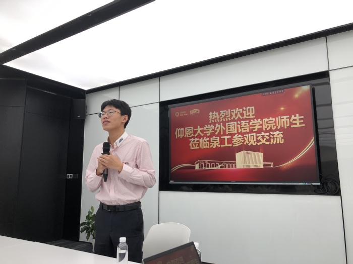 在泉工股份校友团队的带领下,师生们参观了企业展厅、智能生产车间及云平台管理中心。从环保砖机研发到智能化生产线运作,学生们直观感受到“中国制造”的技术实力;企业荣誉墙上的“博士后科研工作站”“制造业单项冠军”等资质,更凸显其行业领先地位。校友结合自身外贸经验,分享了跨文化商务谈判技巧与实战案例,为商务英语学习提供了鲜活范本。