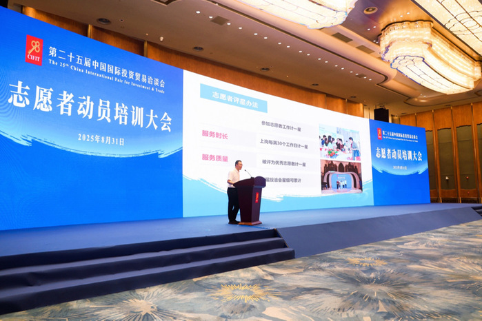 培训伊始,全体志愿者代表合影留念,展现服务盛会的精神风貌。随后,投洽会组委会会务部副部长贺春旎主持会议;商务部驻福州特办领导强调投洽会的国际合作价值;投洽会组委会会务部副部长张建斌明确志愿服务标准;新老志愿者代表分享经验、表态发言;授旗仪式进一步凝聚责任意识。