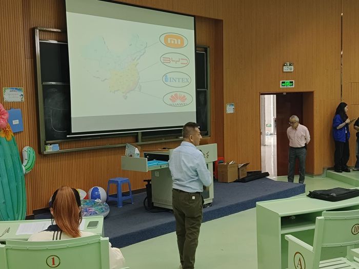 宣讲会上,明达公司代表James Spencer与George Emma通过企业介绍、视频展播和互动问答等形式,全面展示企业概况与发展前景,耐心解答学生关于岗位需求、职业发展路径等问题,增进学生对企业认知。现场设置互动环节并发放纪念品,有效提升学生参与度。